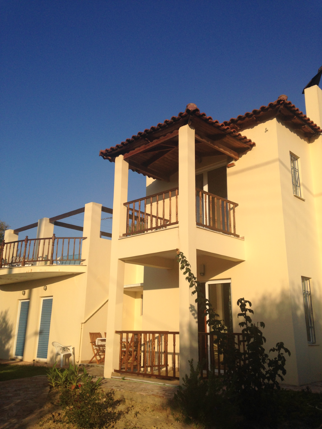 `Dit is een gezellig vakantiehuis wat veel vrijheid biedt. Het huis bestaat uit 120 m2 overdekte leefruimte en een dakterras van 80 m2, omringd door een tuin / boomgaard. Het ligt in een rustig wijkje aan de rand van het dorp, 150m lopen van de zee. Zwemmen kan op 500 m afstand temidden van de grieken die ook weten dat daar een goed strandje is. Er zijn veel restaurantjes op loop-, fiets- of auto-afstand, die worden bezocht door mensen uit het dorp en uit de stad (Patras). In het dorp zijn supermarktjes, bakker, slager, visboer etc, ook te belopen / fietsen.